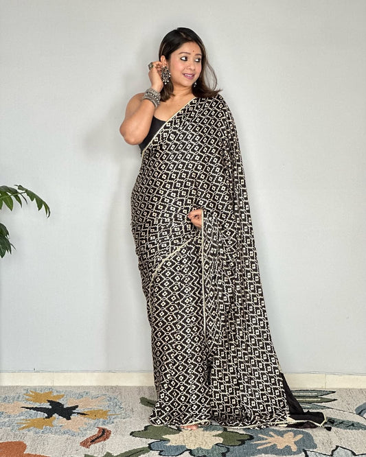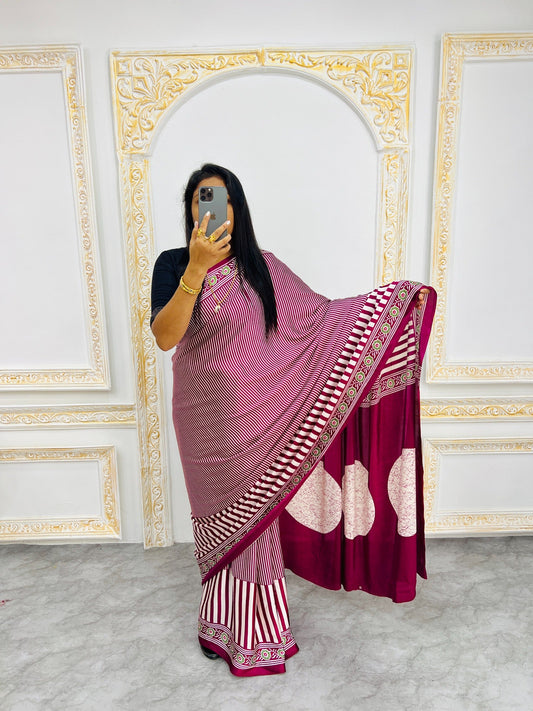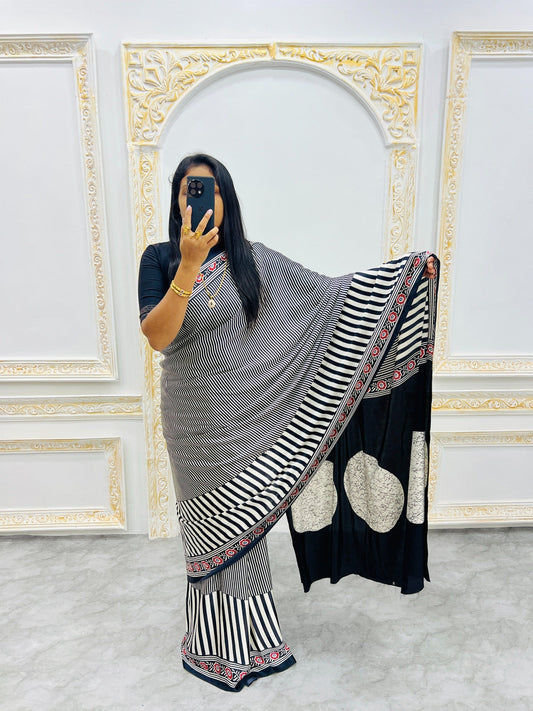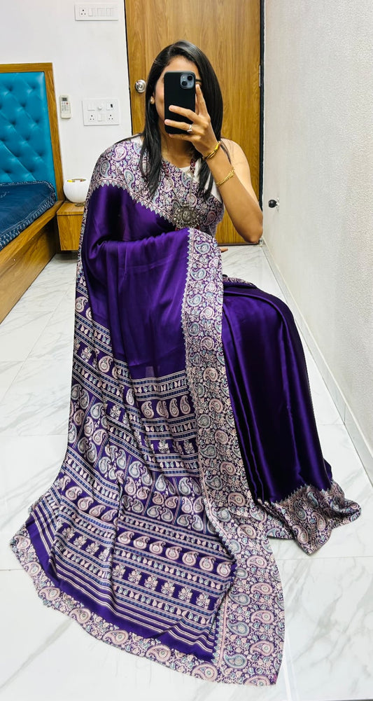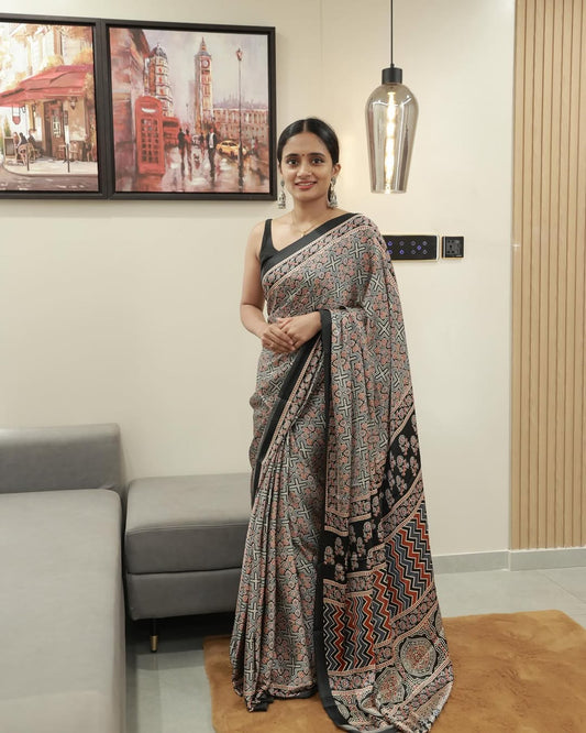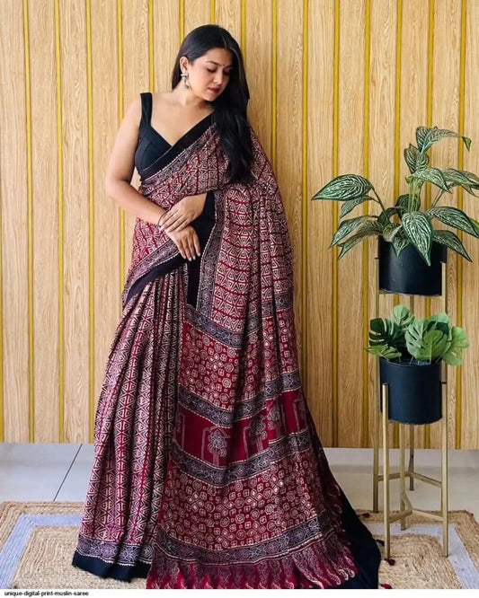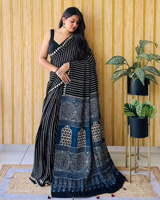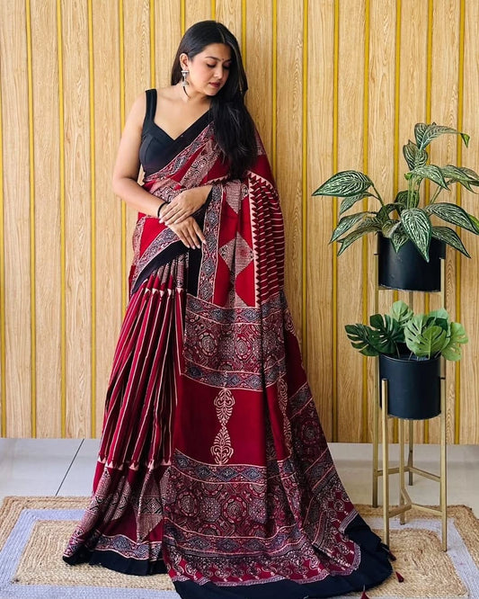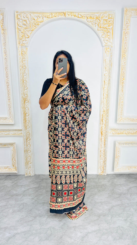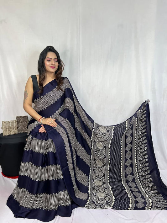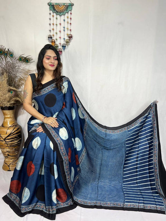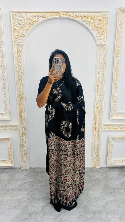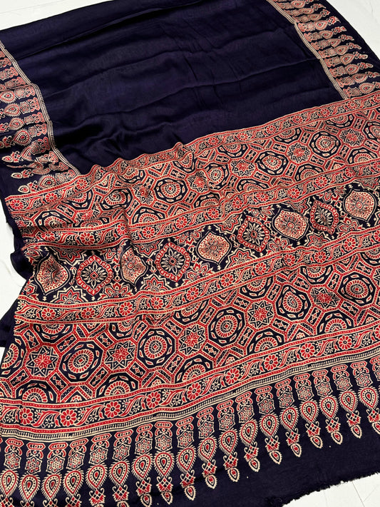 New Ajrakh Modal Silk Ajrakh Fancy Pallu Saree Available in modal silk ajrakh natural mill...