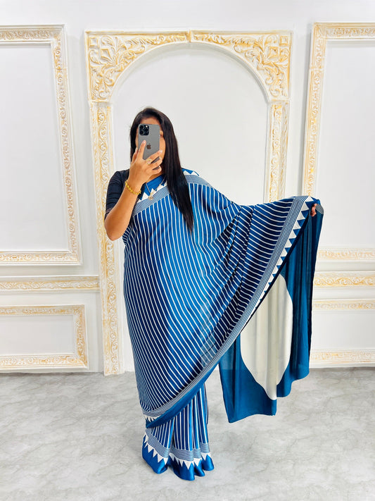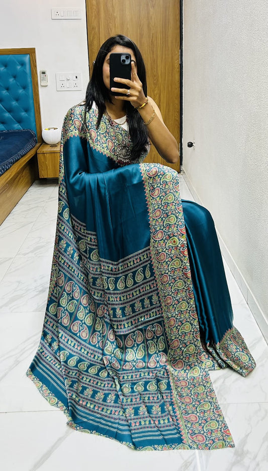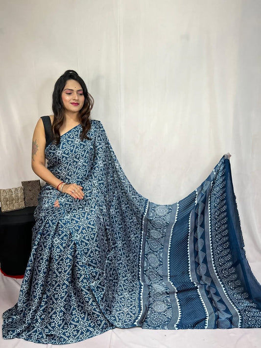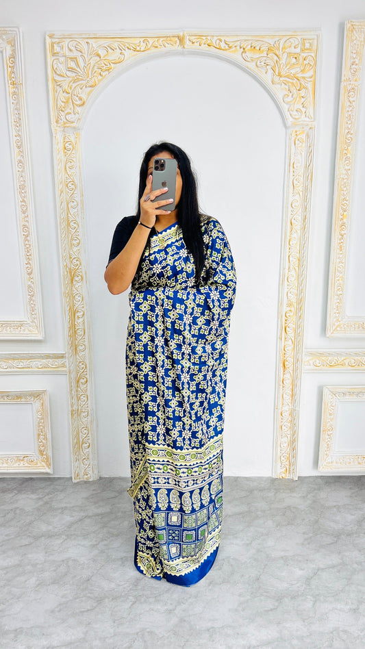 Blue Ajrakh Gajji Silk Ajrakh Fancy Pallu saree Available in Gaji silk Ajrakh natural mill...