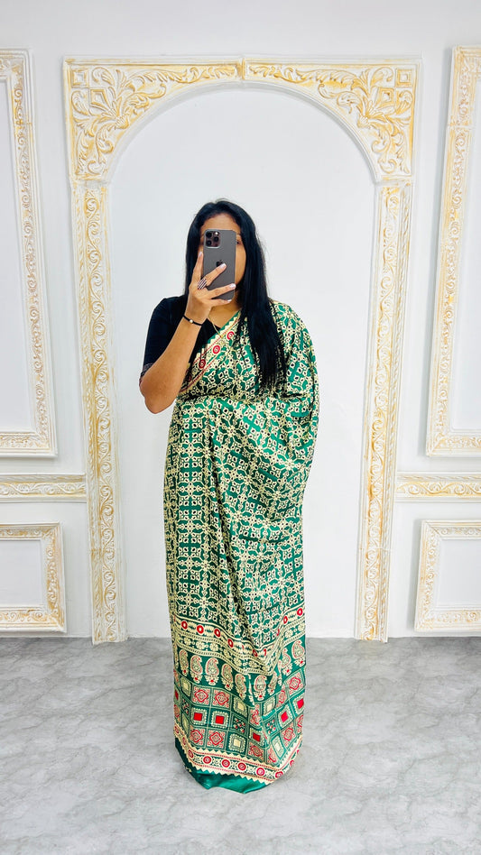 New Ajrakh Semi Gaji Silk Ajrakh Fancy Pallu Saree Available in semi gaji silk ajrakh...
