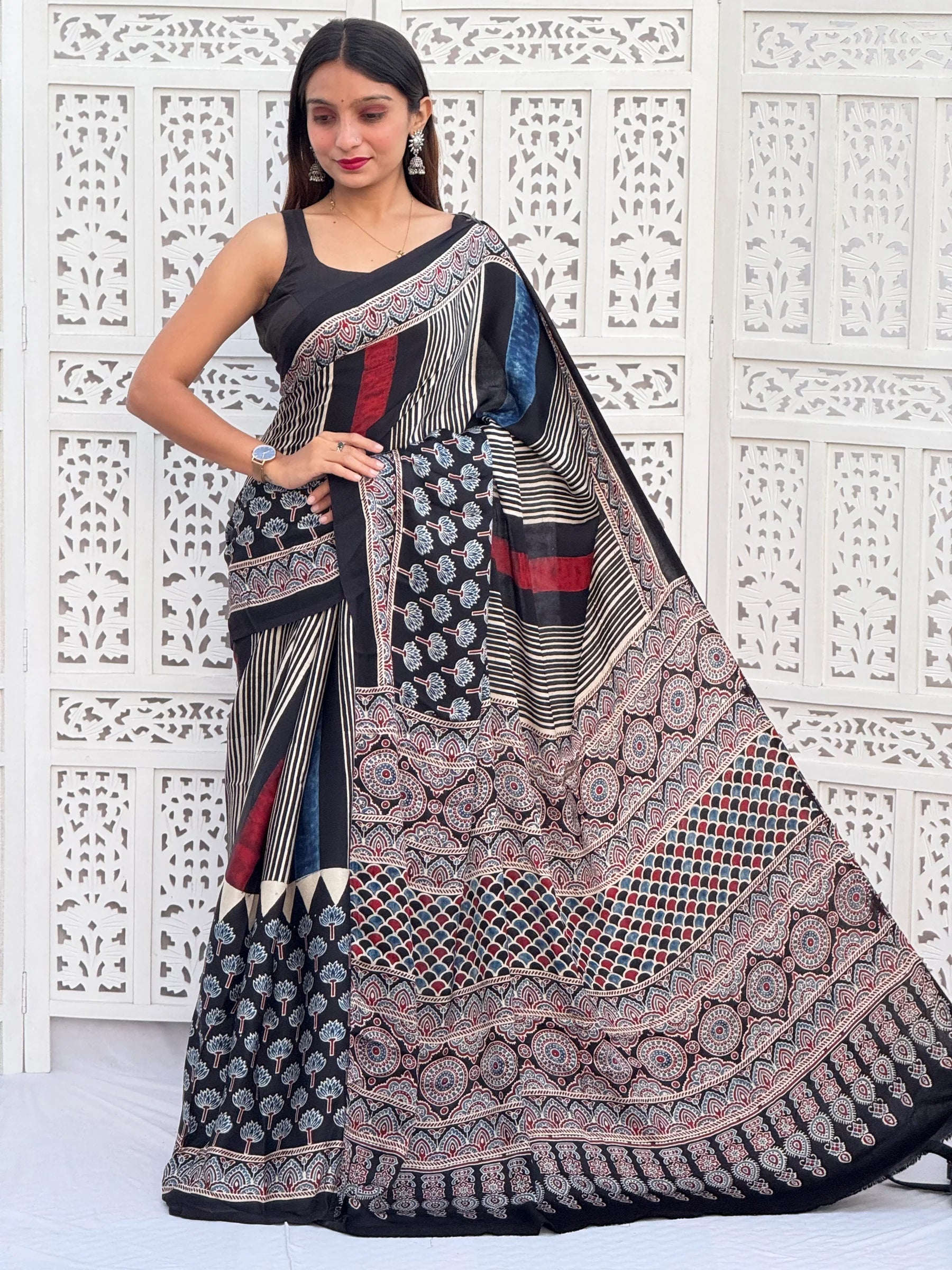 Ajrakh Modal Silk Saree