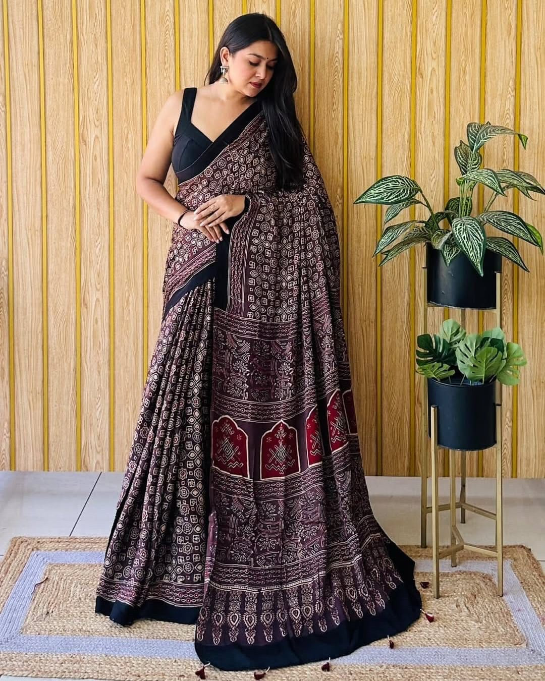 Ajrakh Primum Modal Silk Saree With Blouse