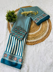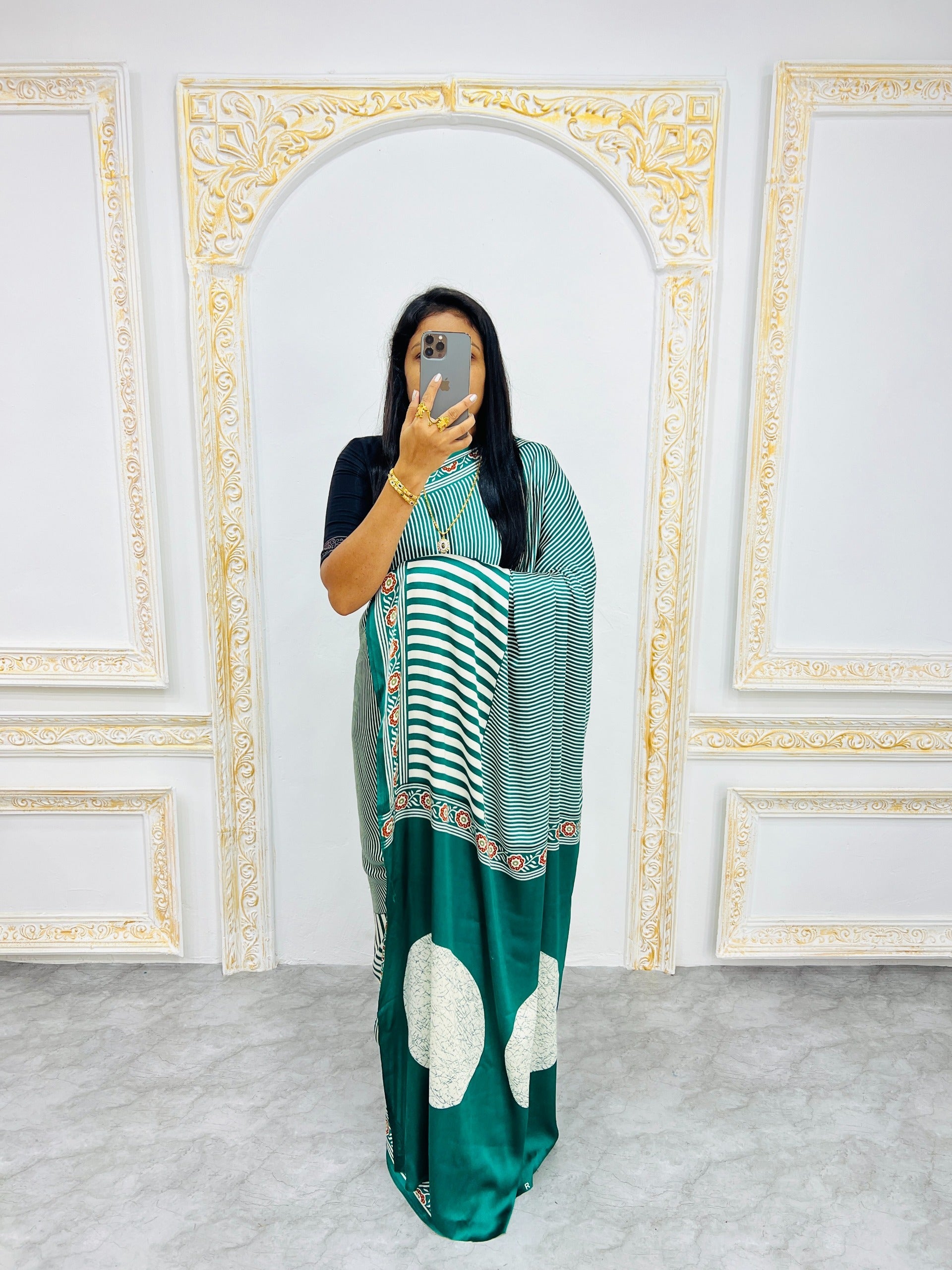Saree work : Digital Print Border with Ajrakh Rich Pallu With Contrast Blouse