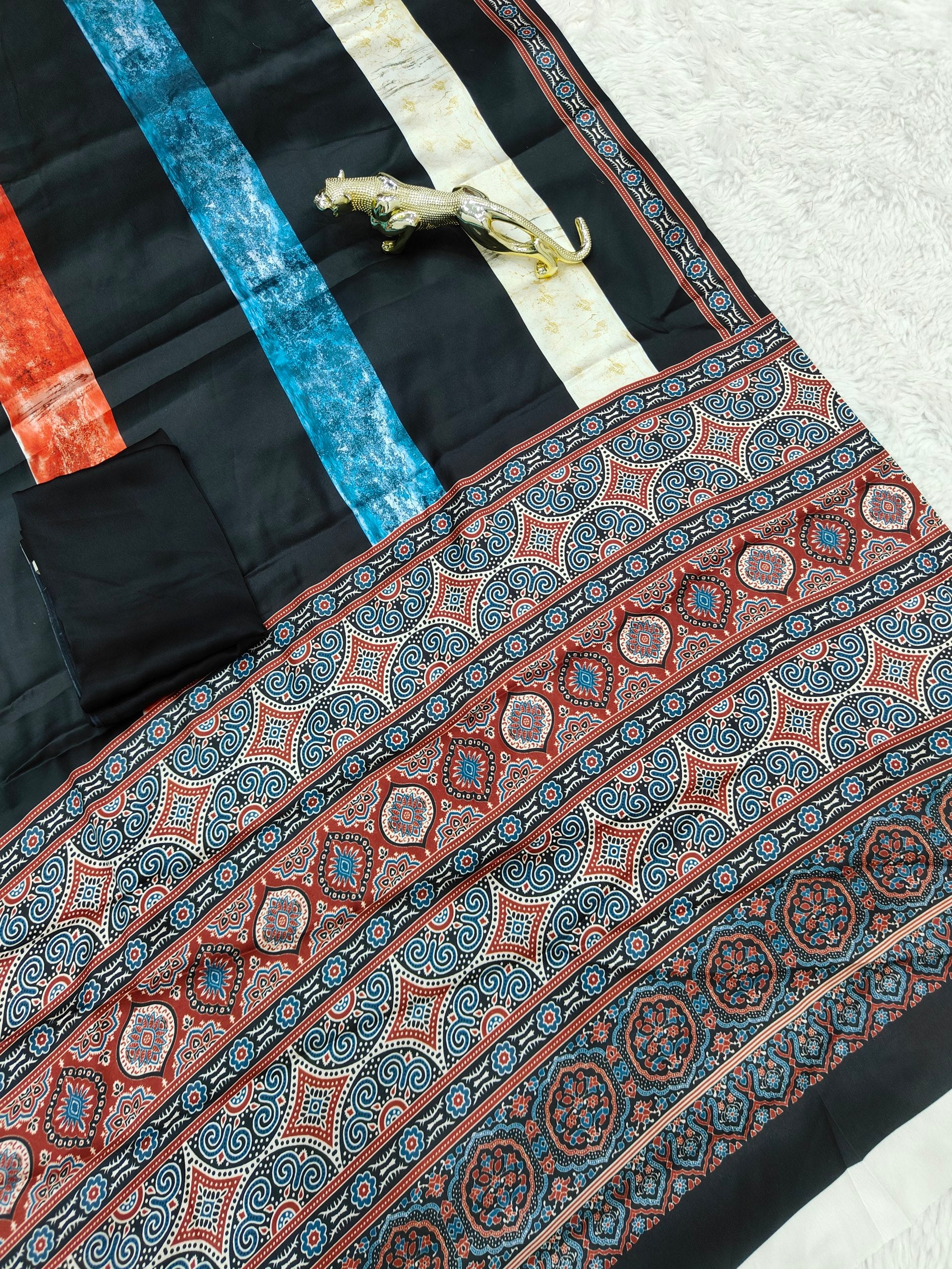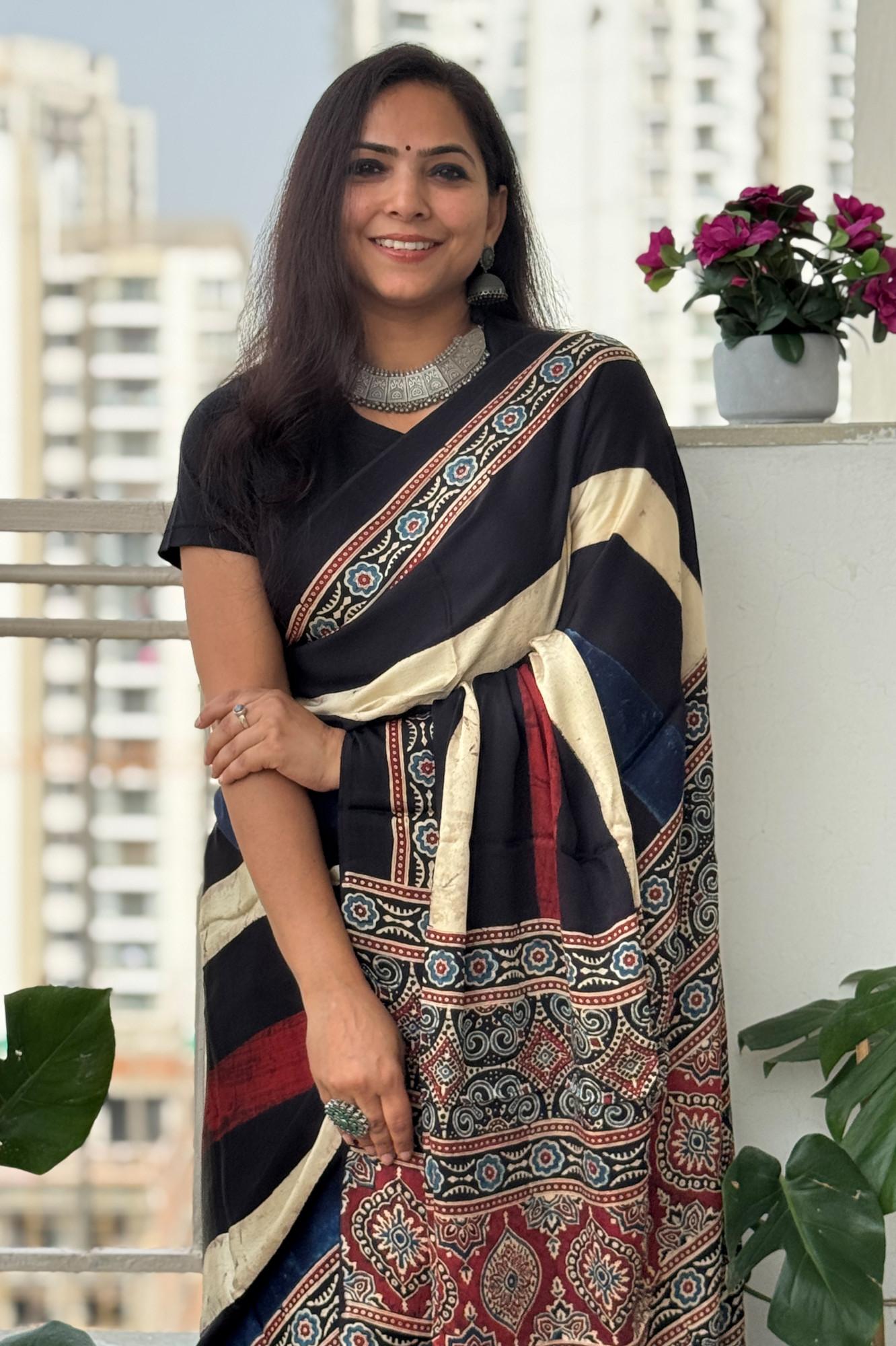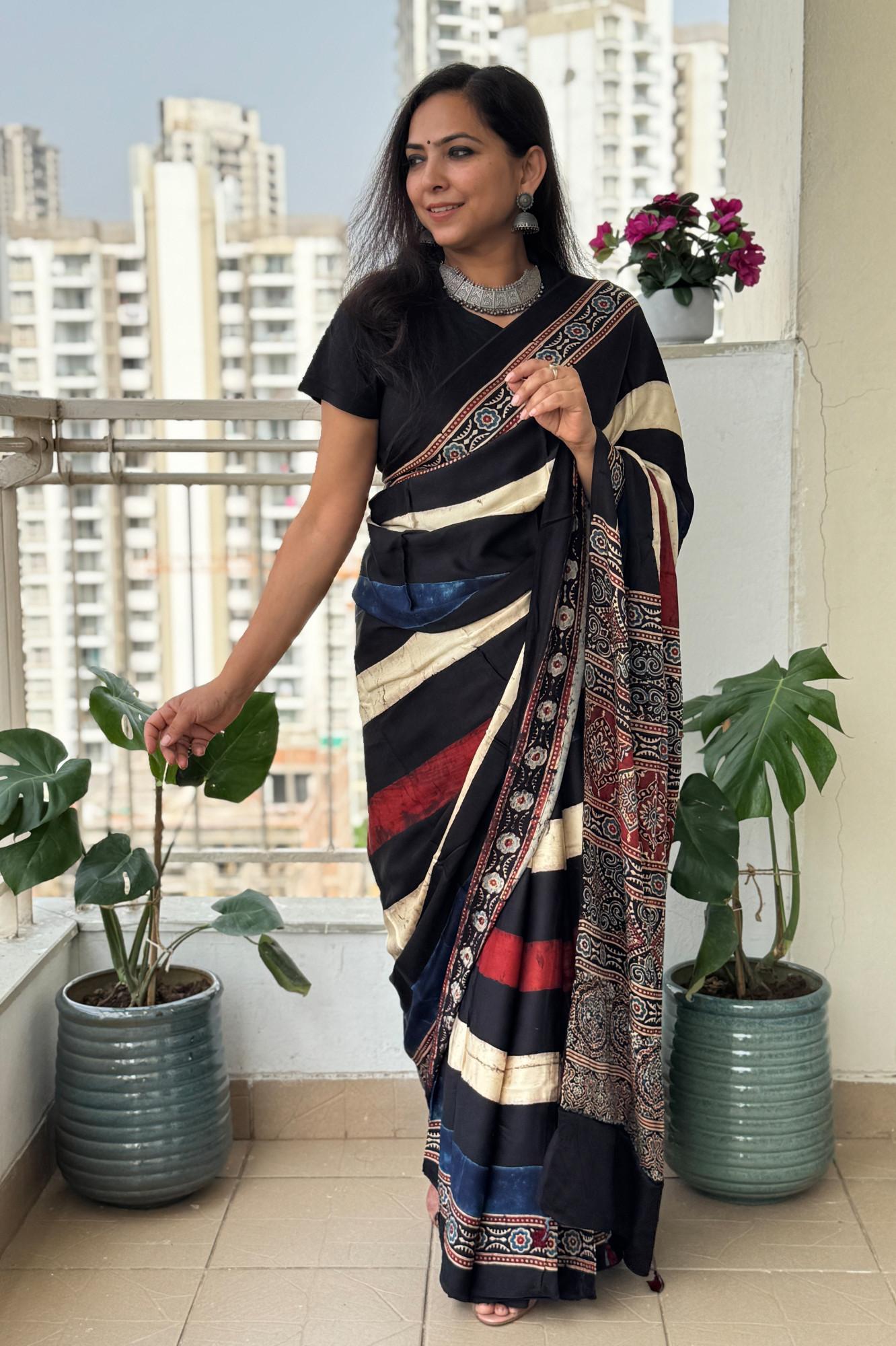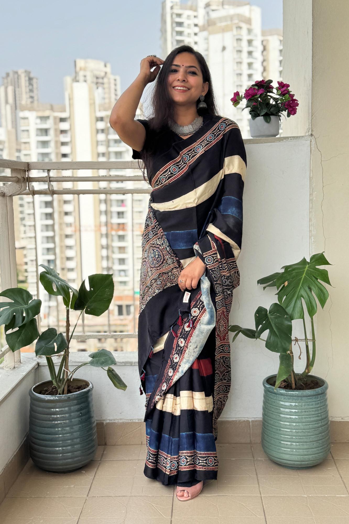 Ajrakh Printed Soft Modal Silk Digital Print Saree