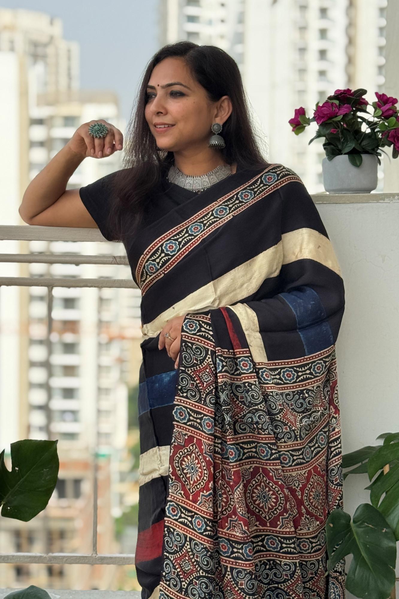 New Ajrakh Modal Silk Ajrakh Fancy Pallu Saree
