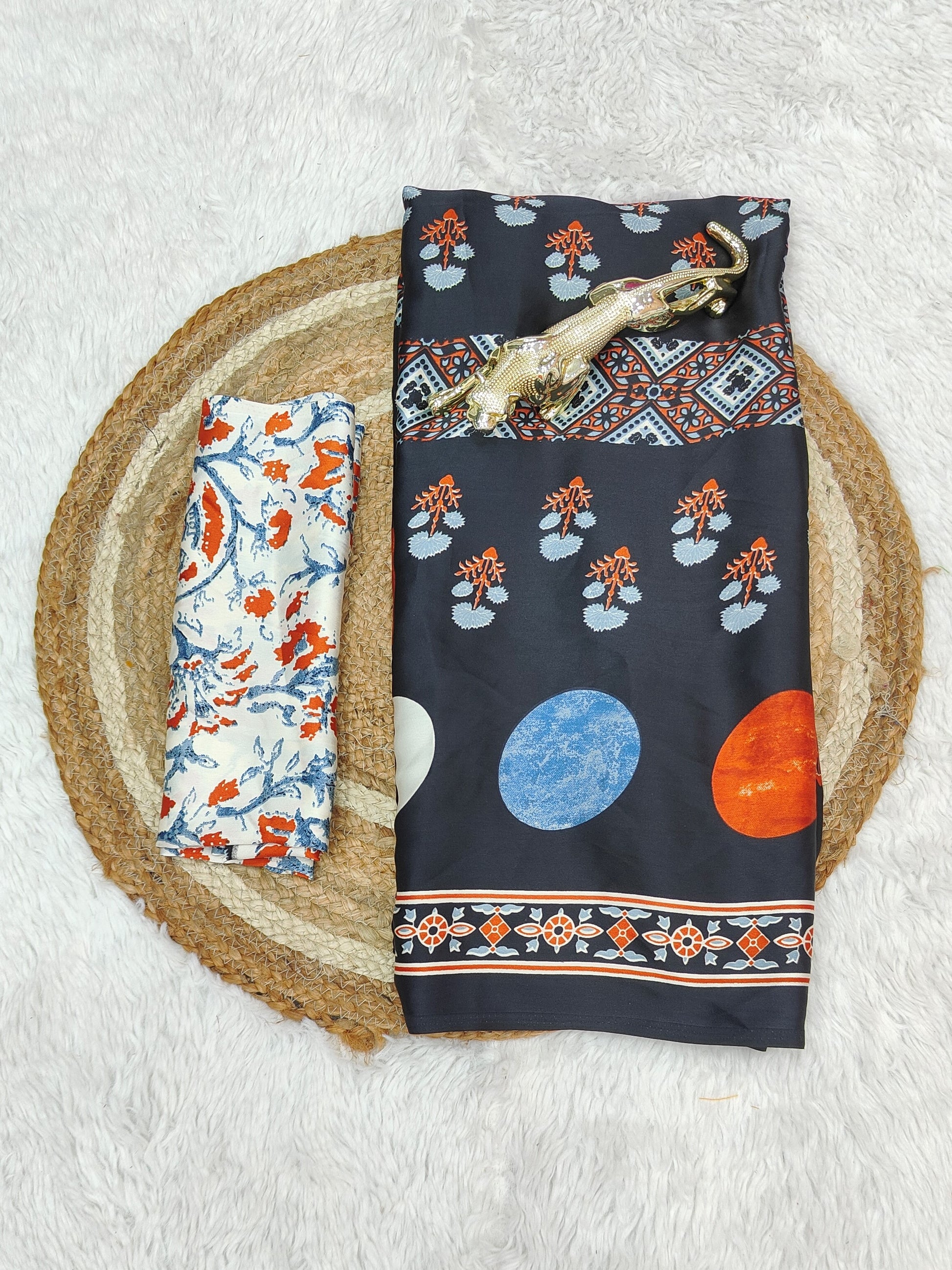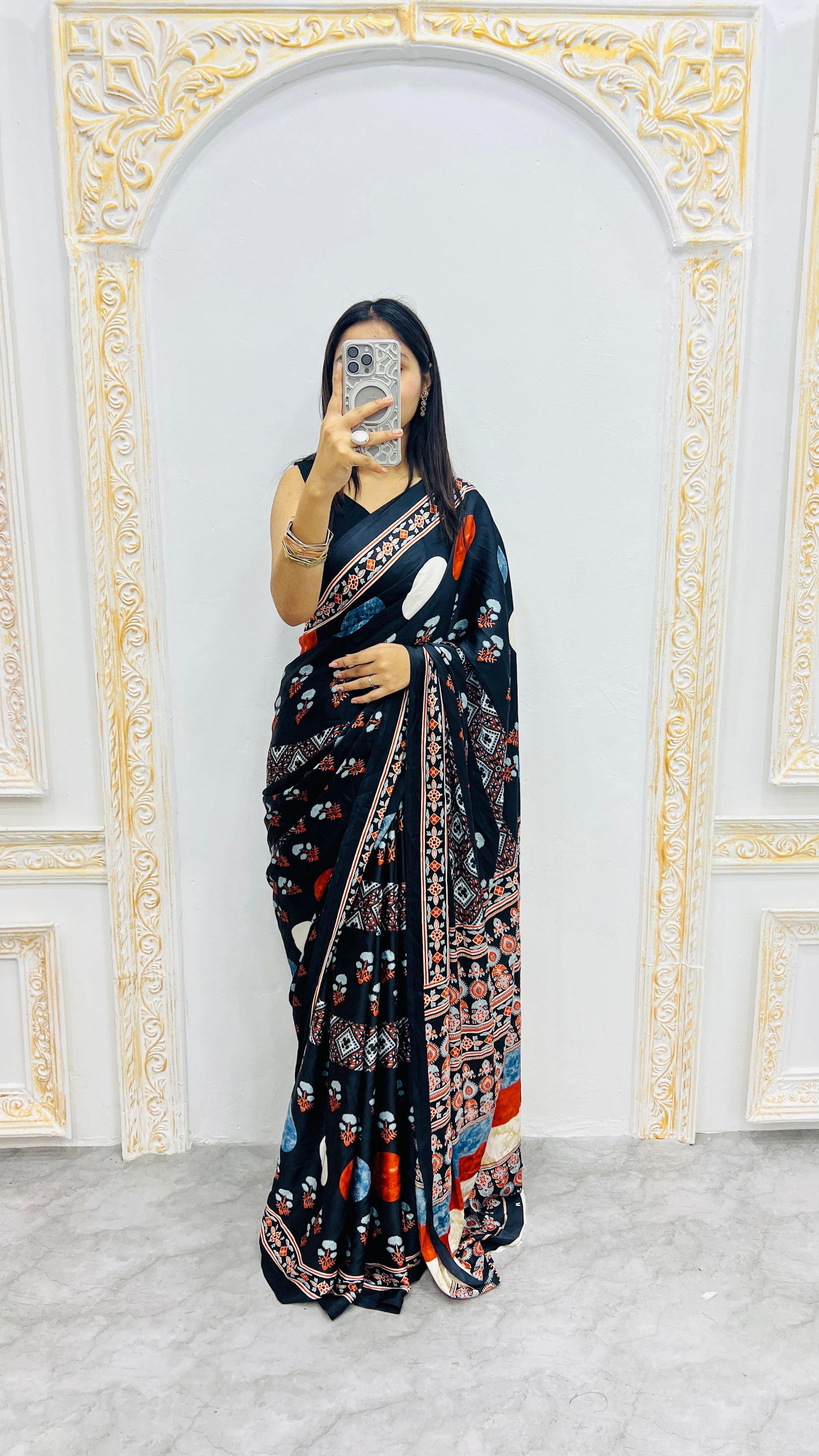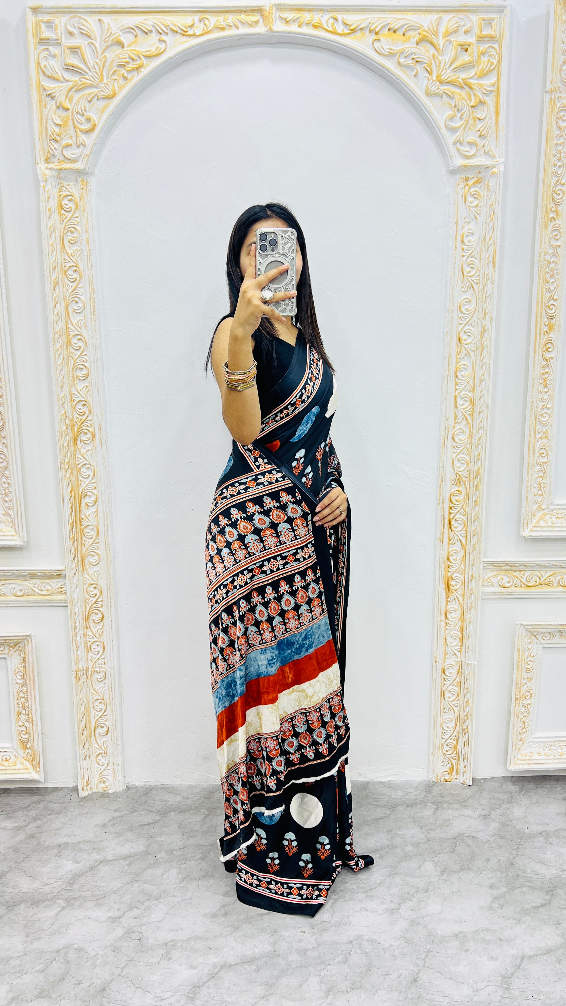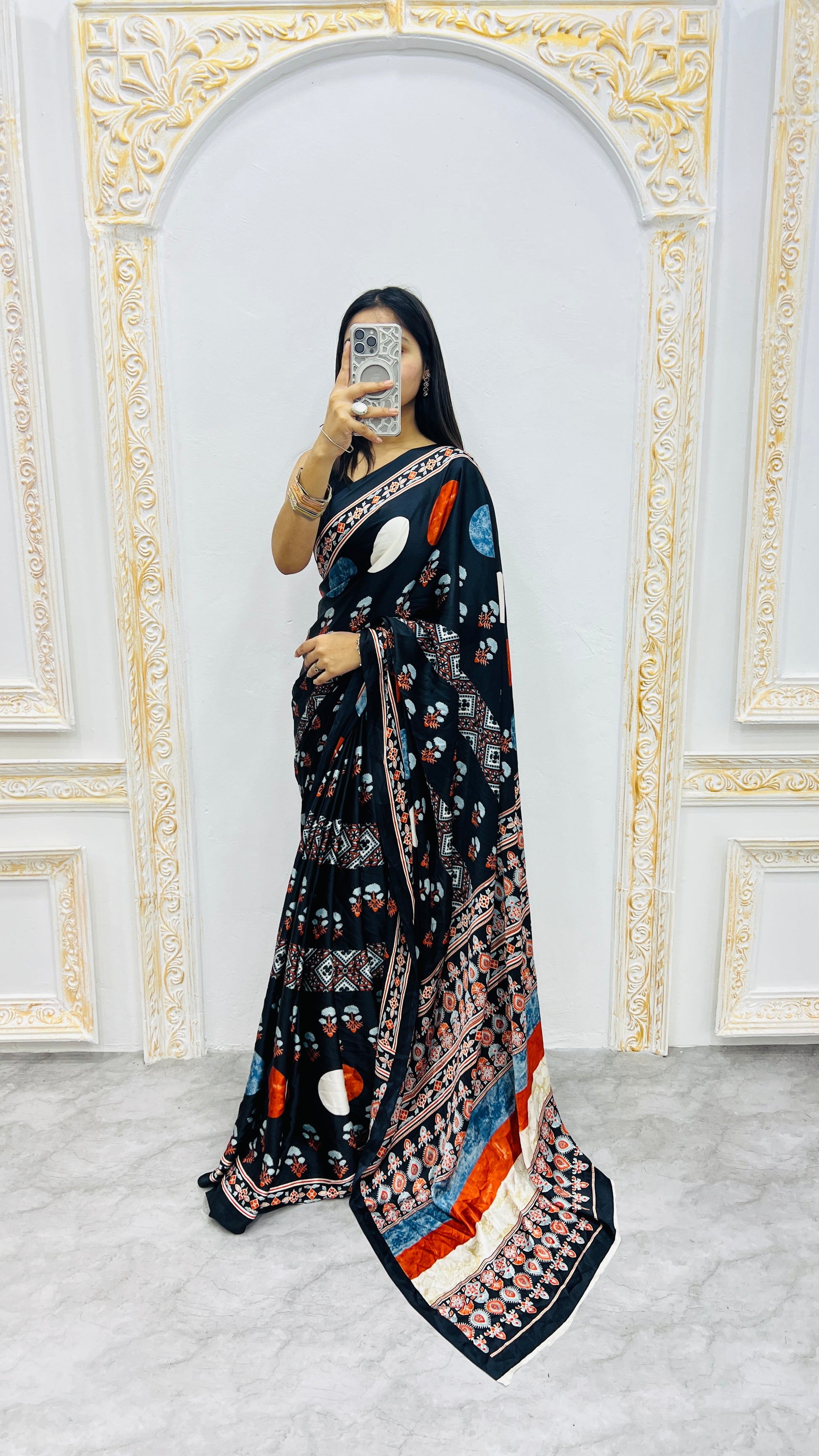 Ajrakh Printed Soft Modal Silk Natural Print Saree