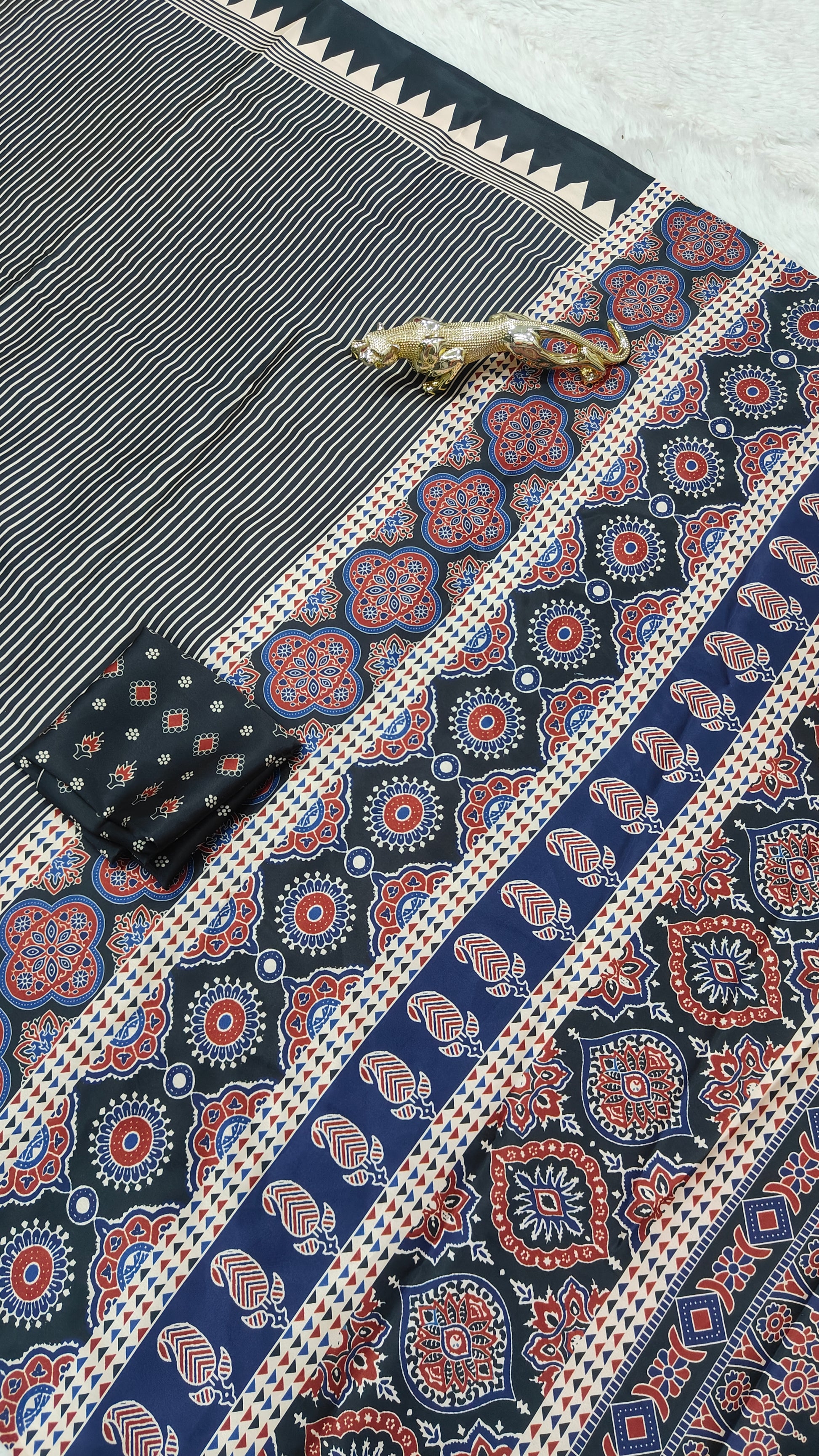 New Ajrakh Modal Silk Ajrakh Fancy Pallu Saree