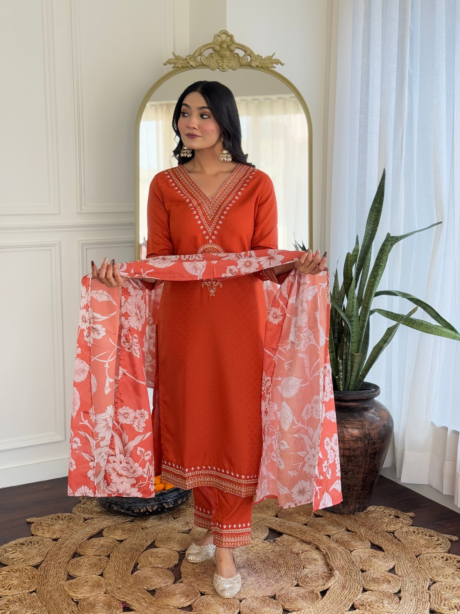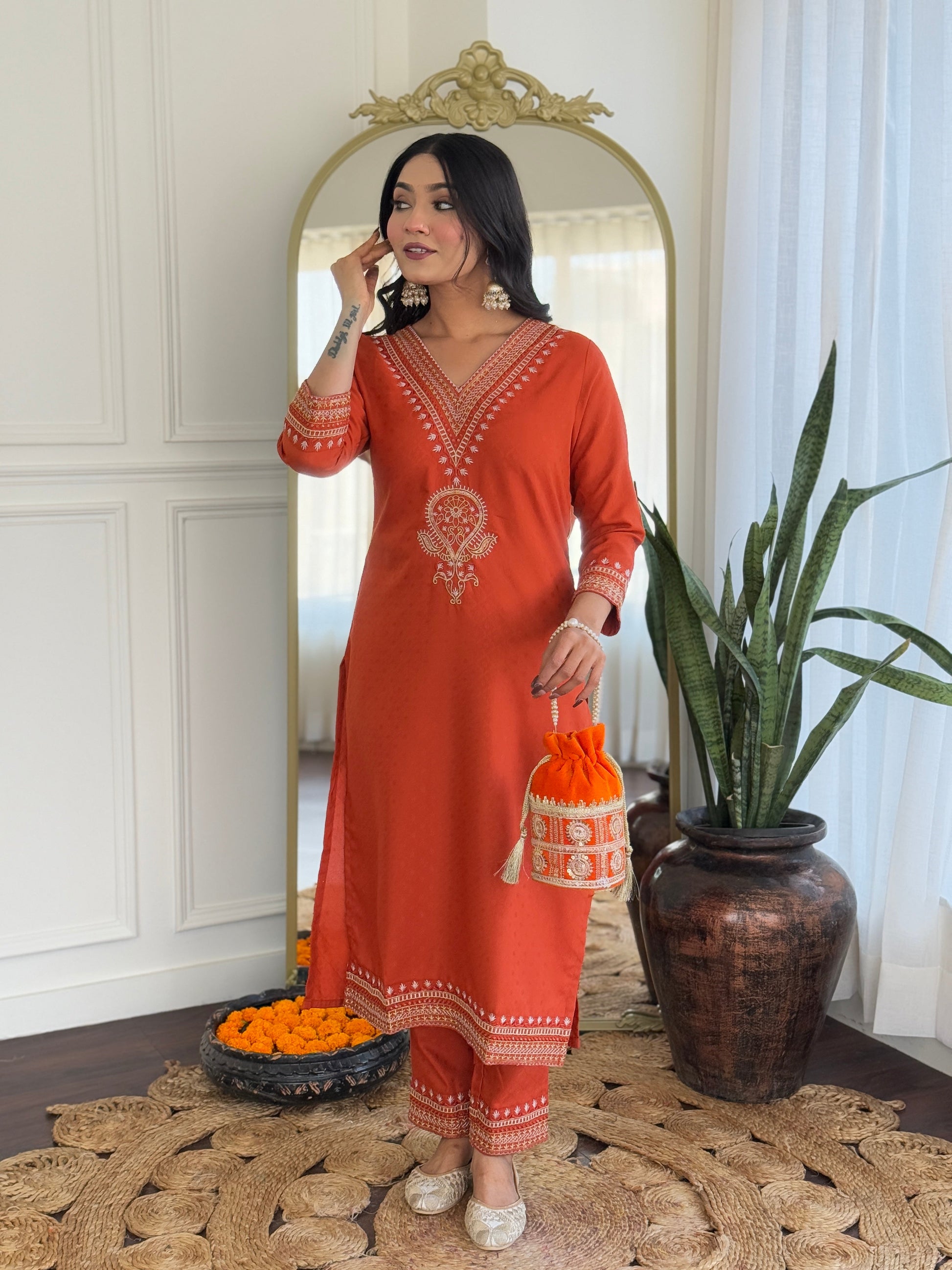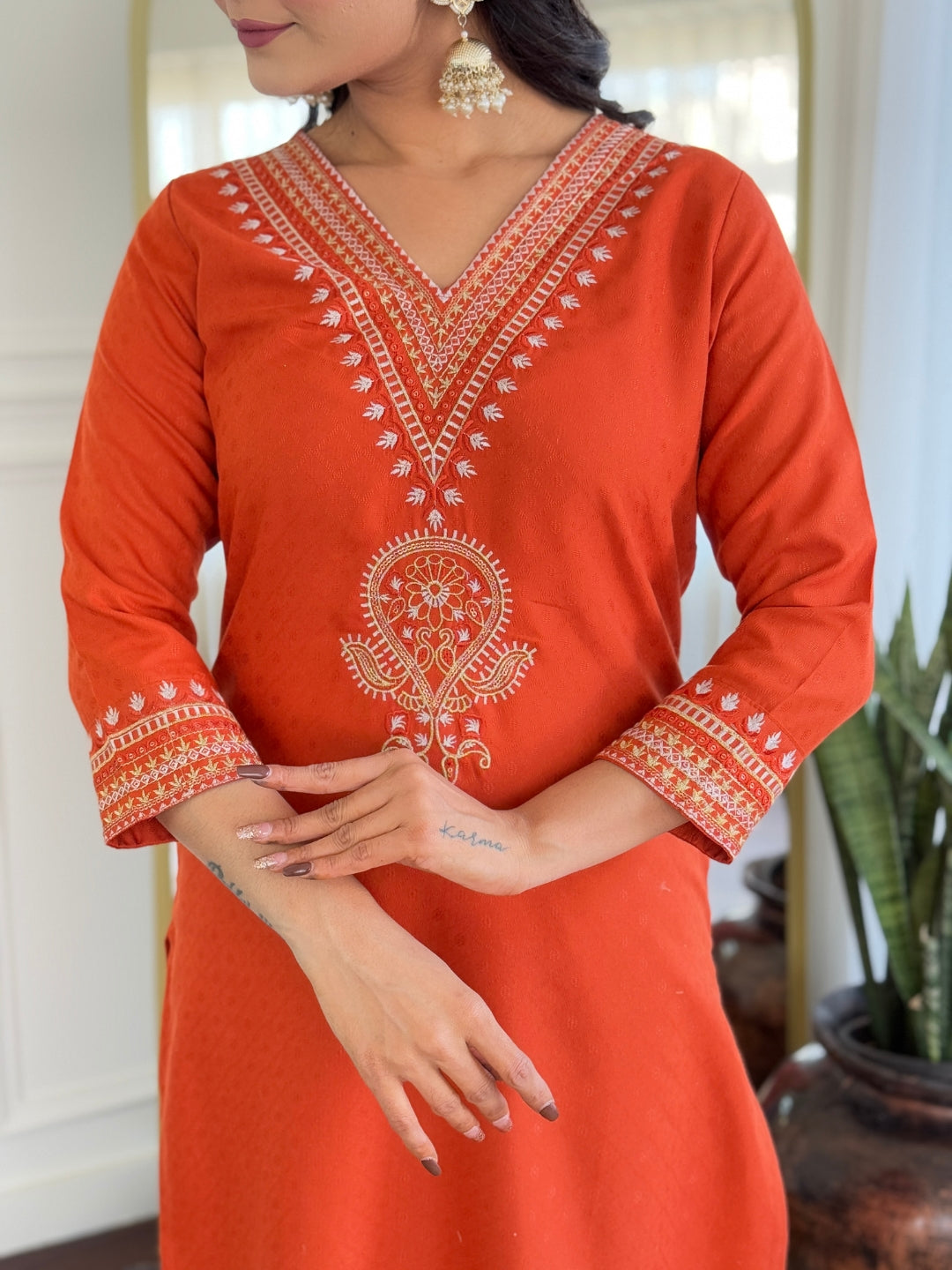 Beautiful Orange Color Viscose Rayon Fabric Kurtis Pant Set