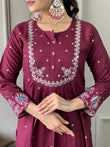 Beautiful Wine Viscose Chanderi Fabric Kurtis Pant Set