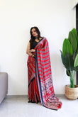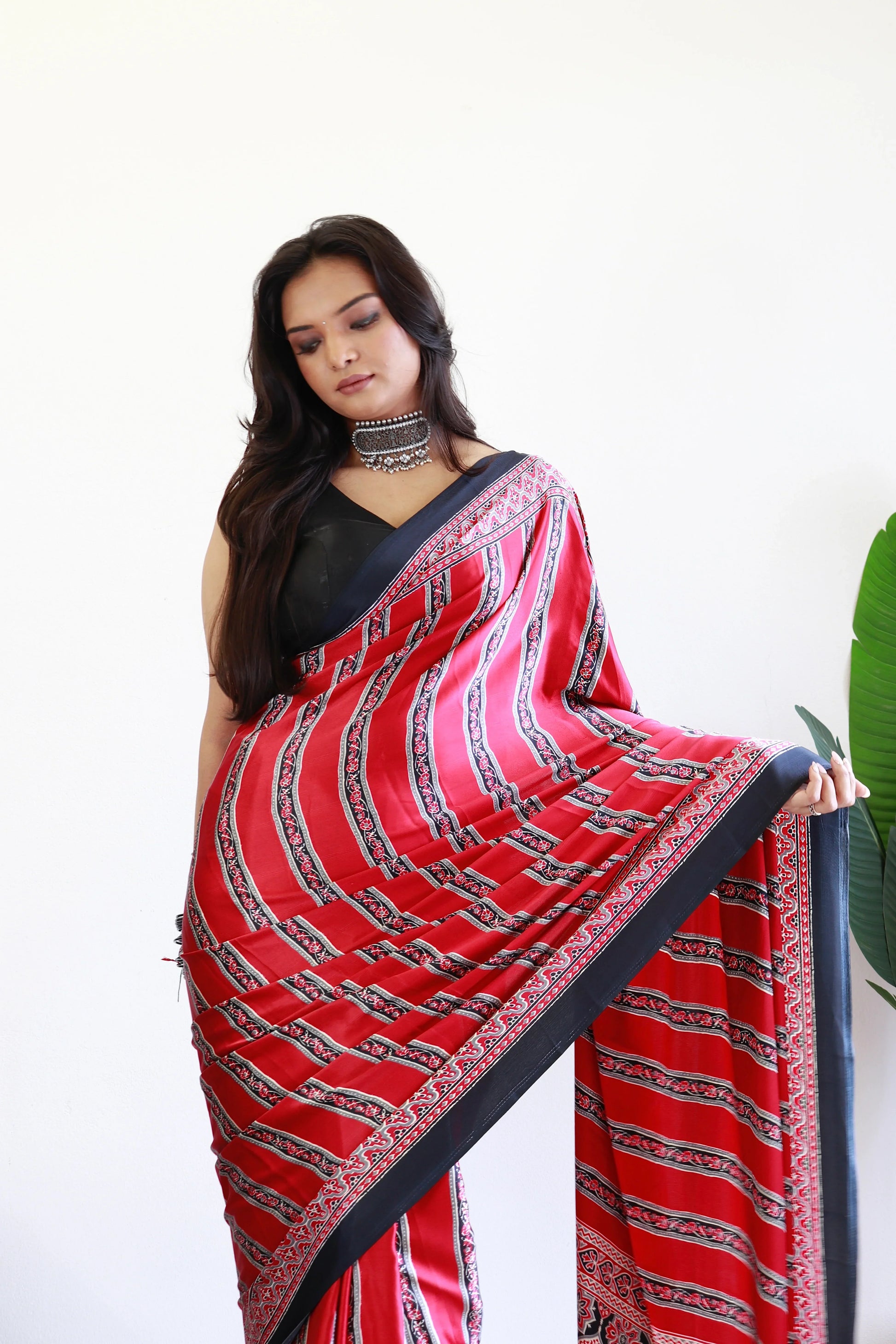 Black And Maroon Ajrakh Printed Soft Modal Silk Natural Print Saree
