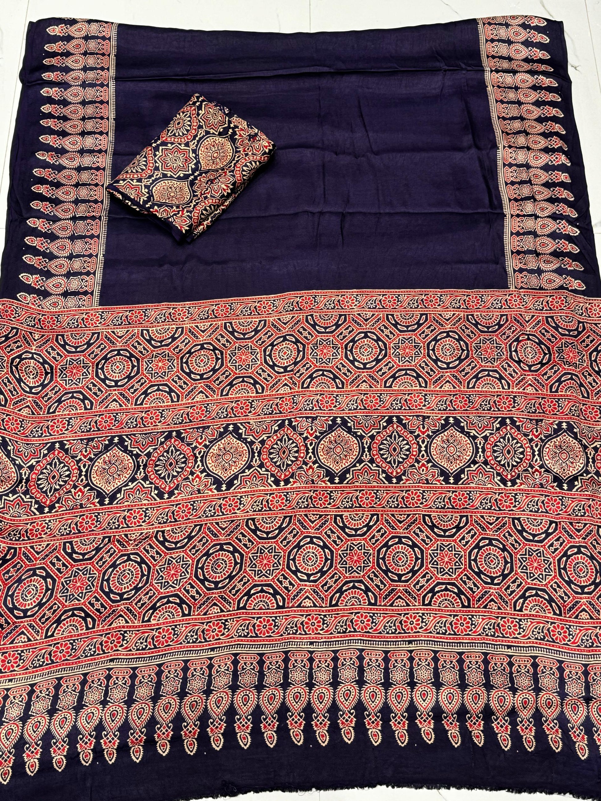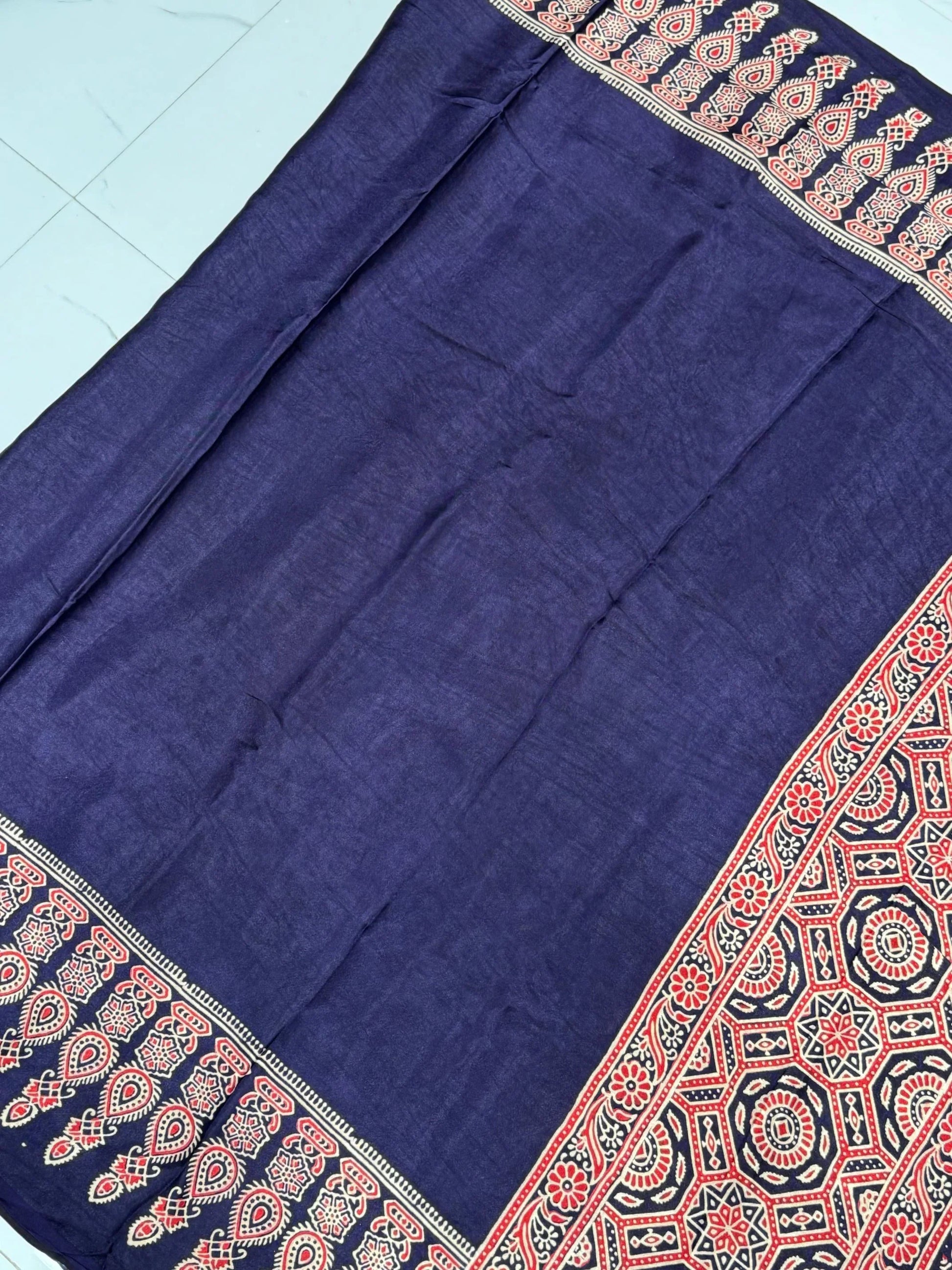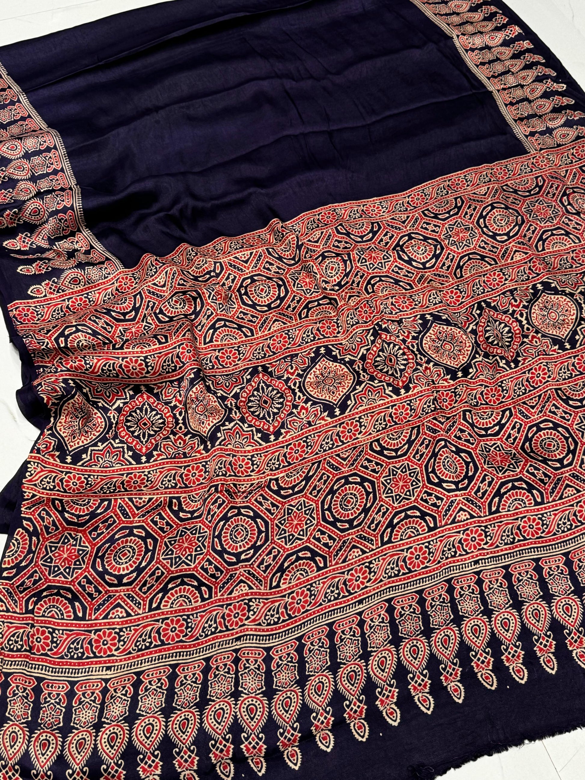 New Ajrakh Modal Silk Ajrakh Fancy Pallu Saree