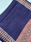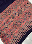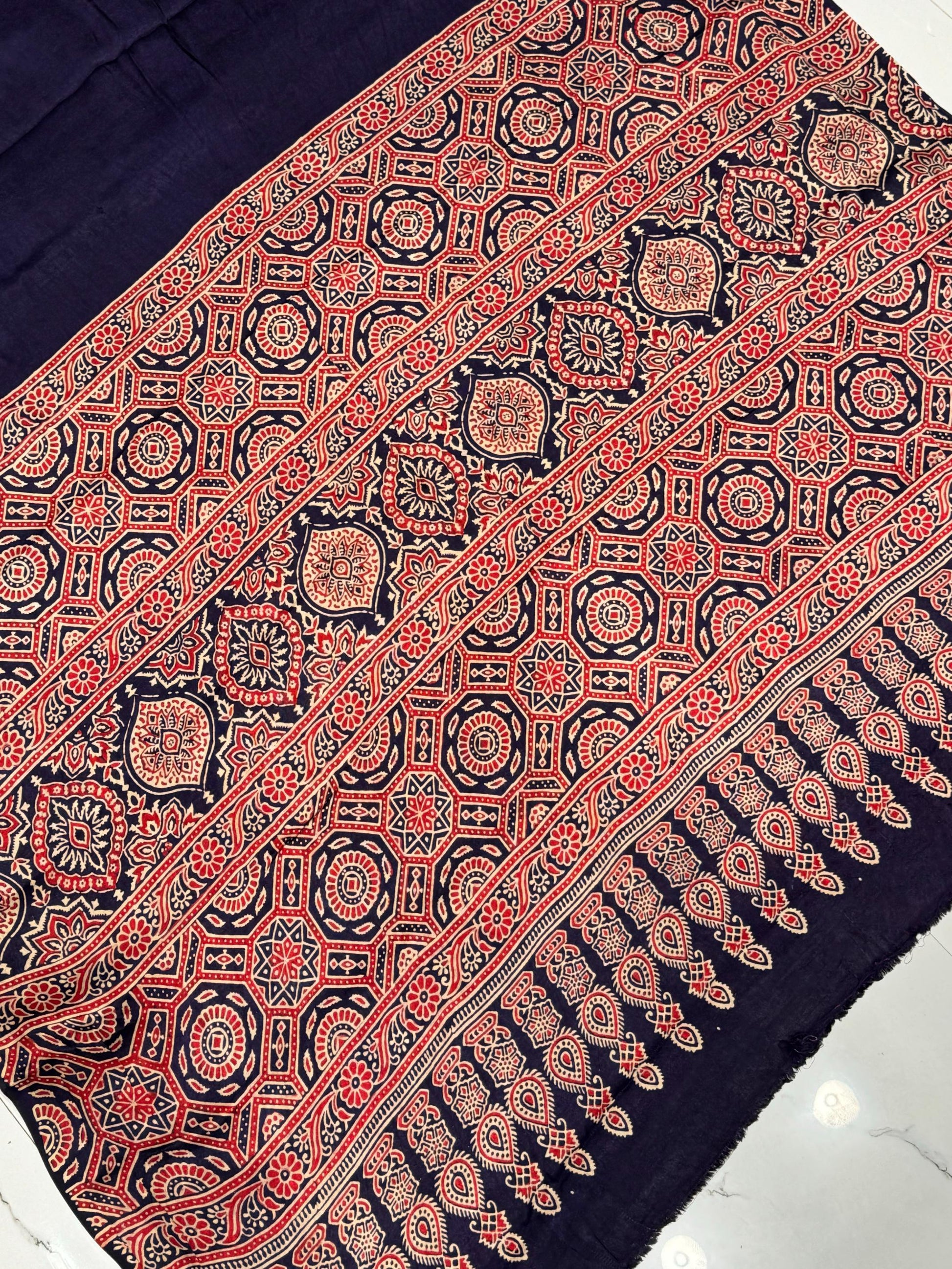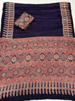 Blue Ajrakh Hand Block Modal Silk Saree With Fancy Ajrakh Pallu and Border