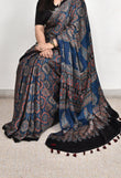 Blue Ajrakh Printed Soft Gaji Silk Natural Print Saree