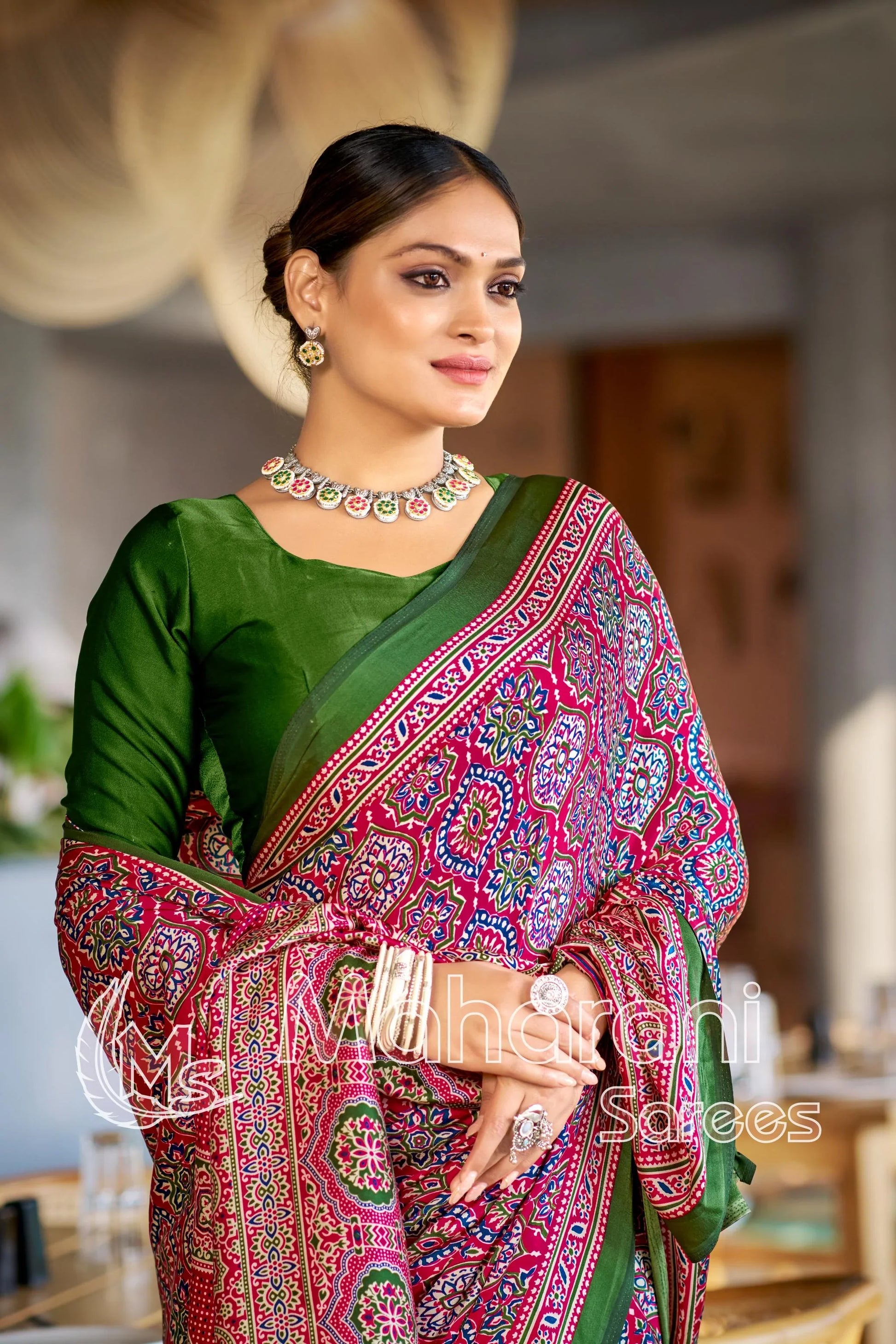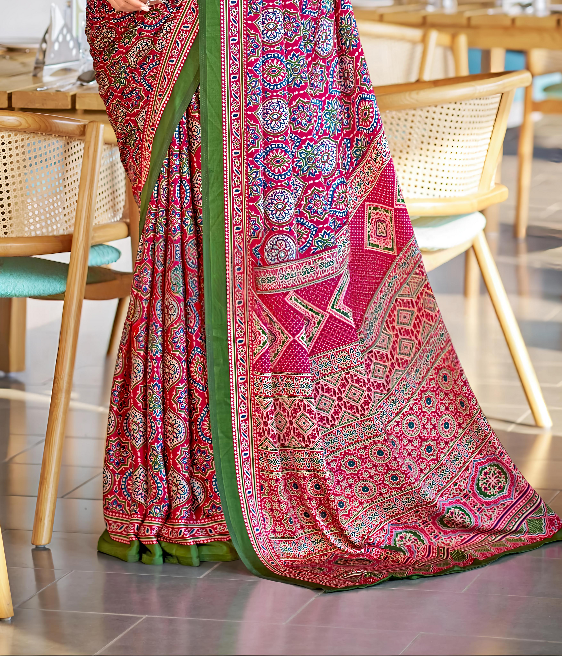 Colorful Rani Ajrakh Printed Soft Modal Silk Natural Print Saree