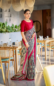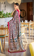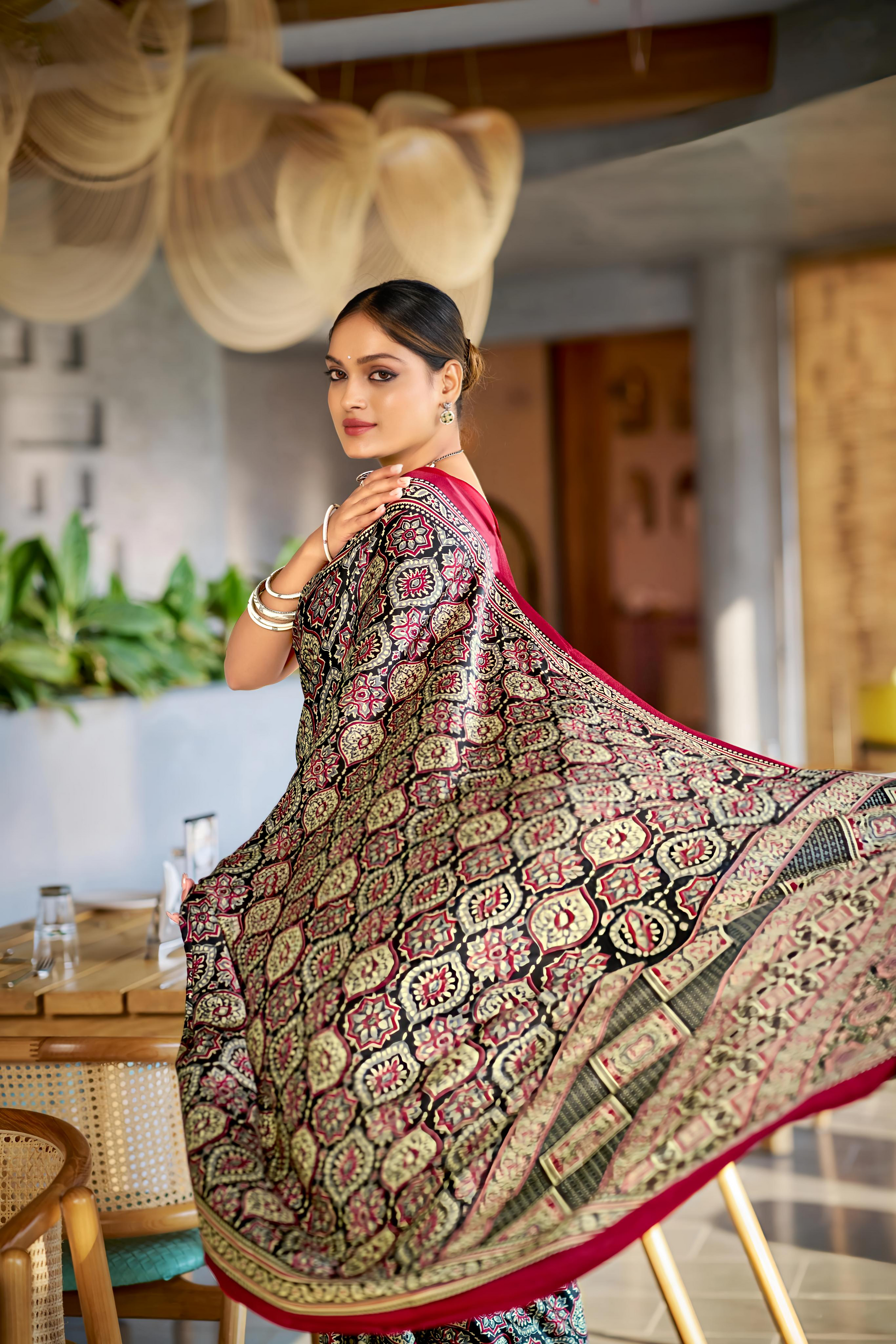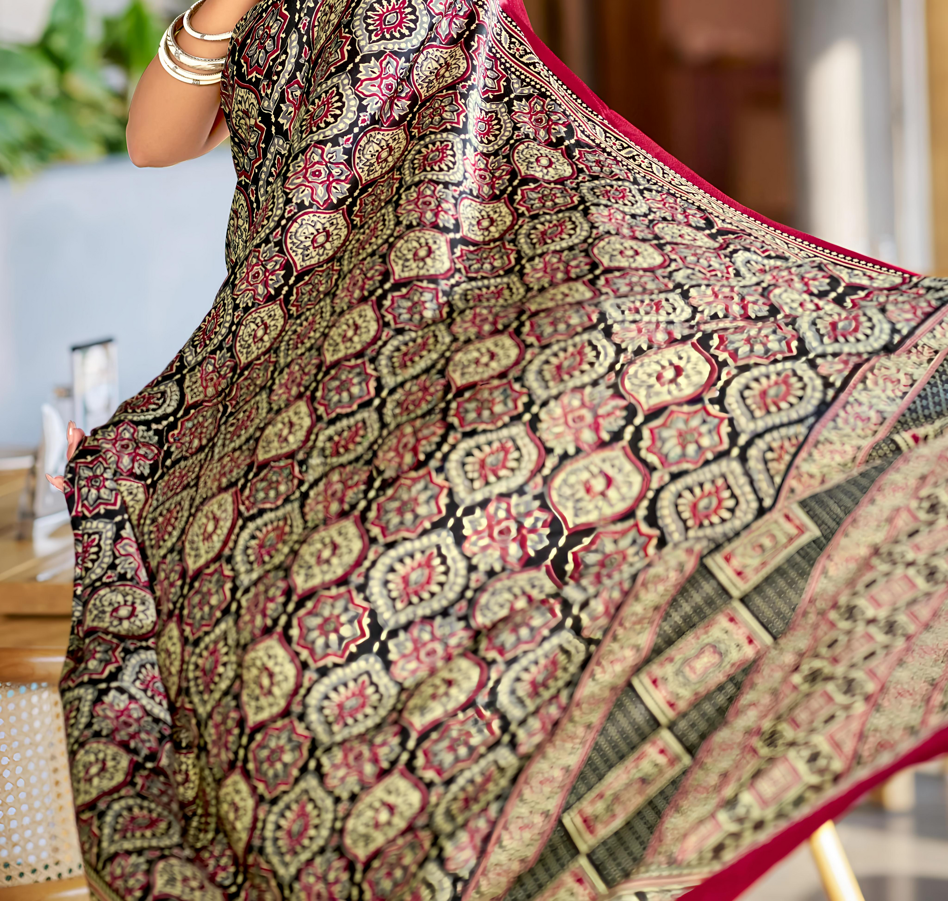 Majestic Black and Maroon Ajrakh Printed Soft Modal Silk Natural Print Saree