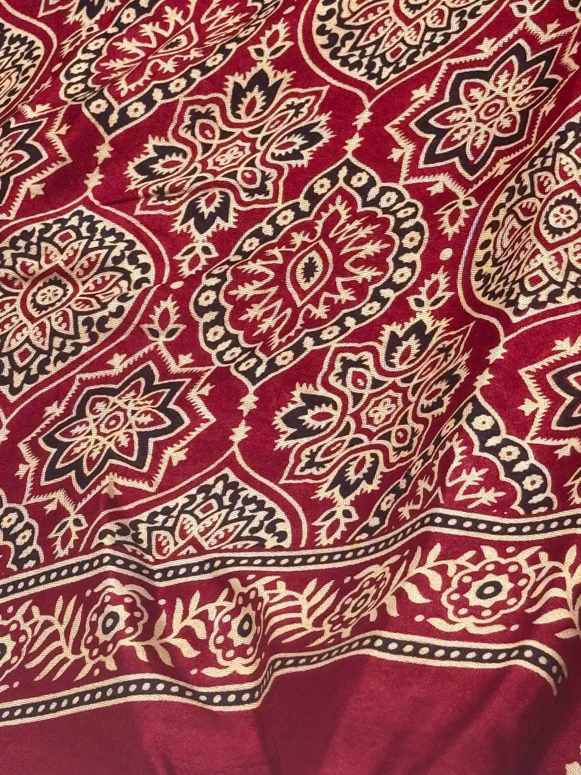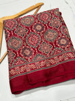 Maroon Ajrakh Hand Block Modal Silk Saree With Fancy Ajrakh Pallu