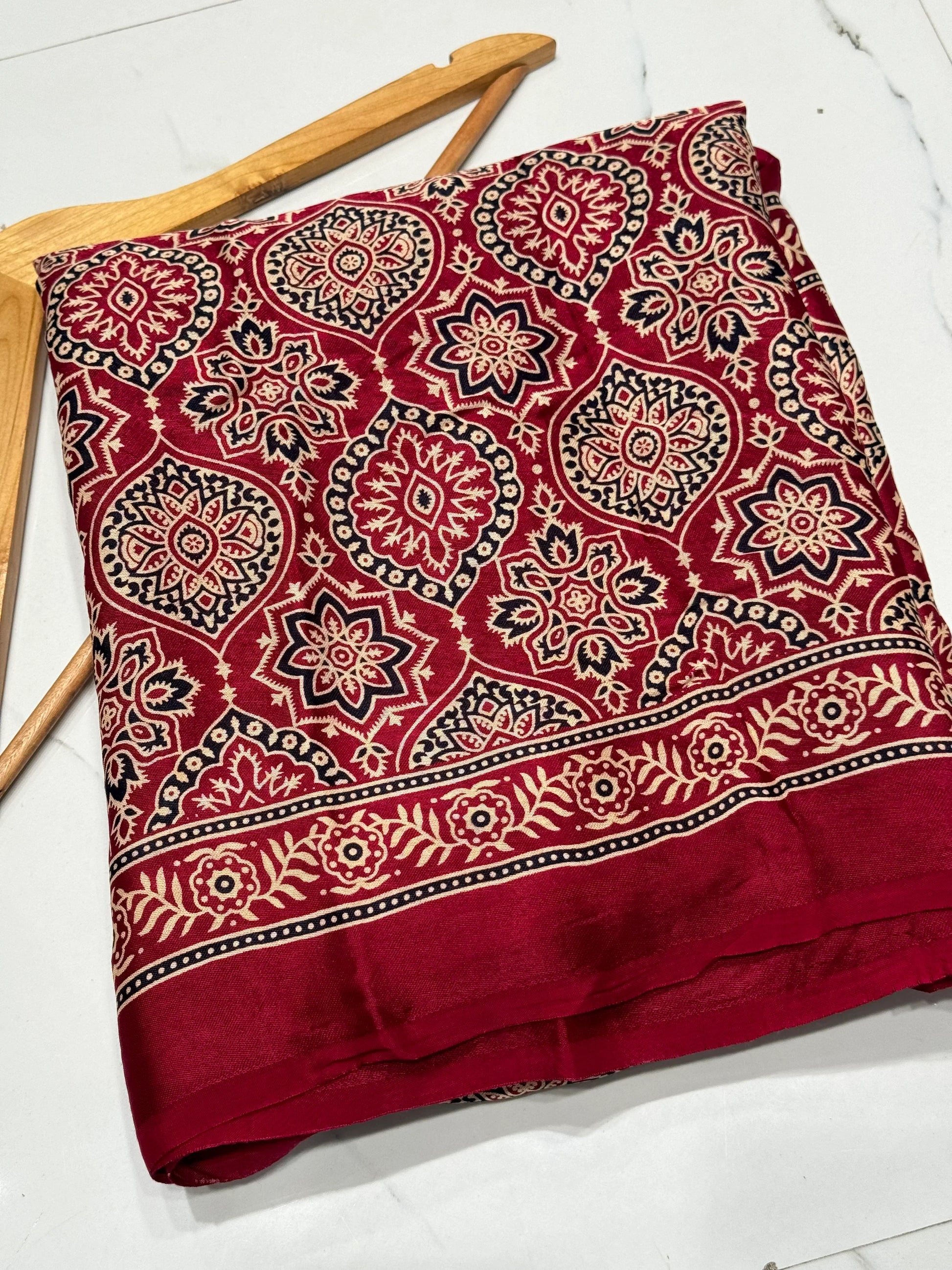 New Ajrakh Modal Silk Ajrakh Fancy Pallu Saree
