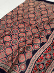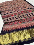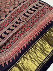 Navy Blue Ajrakh Hand Block Modal Silk Saree With Zari Pallu