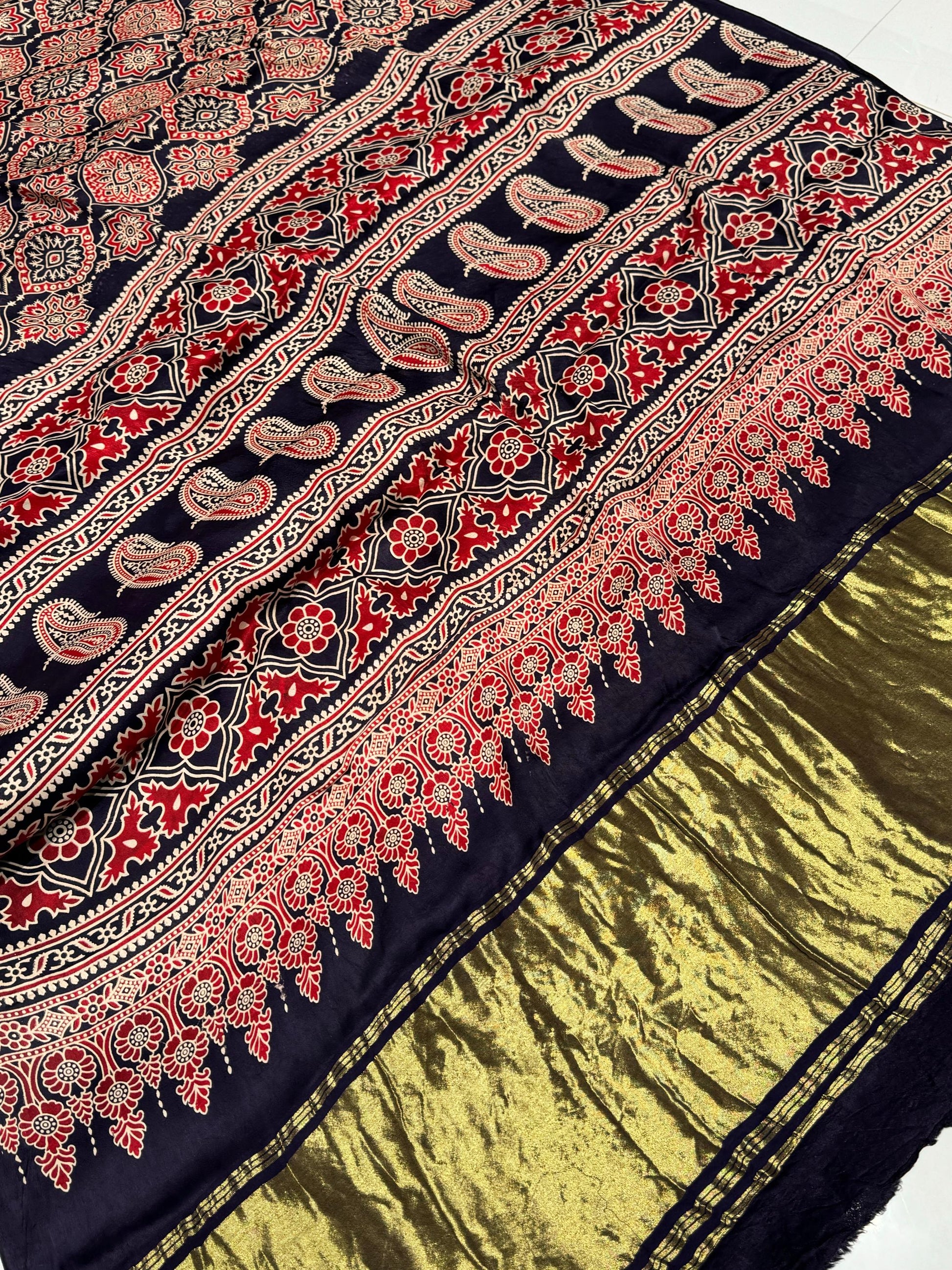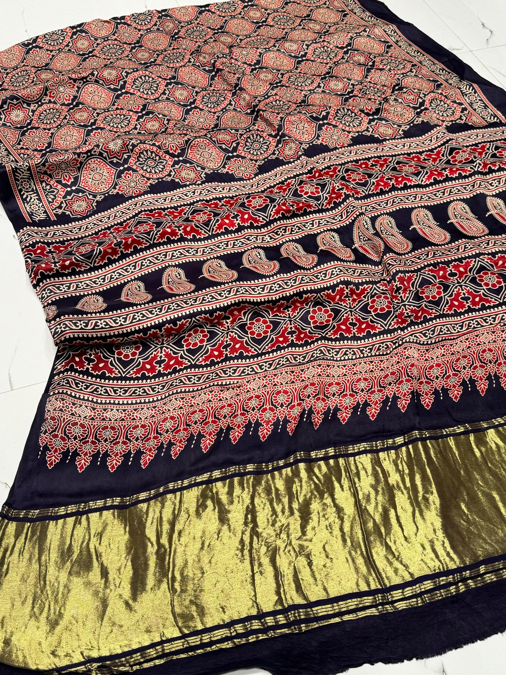 New Ajrakh Modal Silk Ajrakh Fancy Pallu Saree