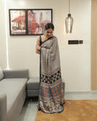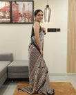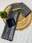 Black Line Ajrakh Primum Modal Silk Saree With Blouse