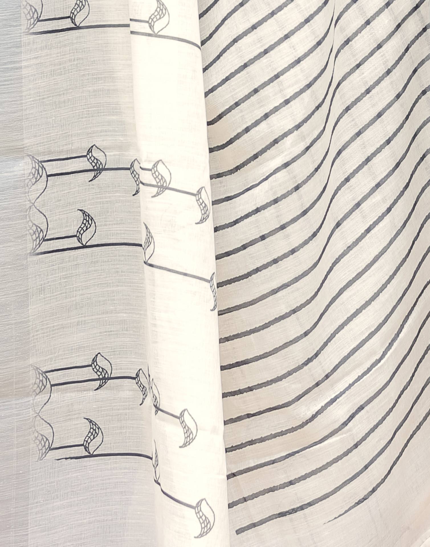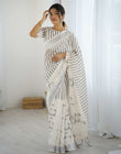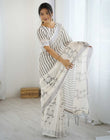 Off White Linen Printed Saree