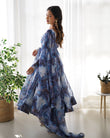 Navy Blue Heavy Pure Soft Organza Silk Marble Print Salwar Suit