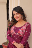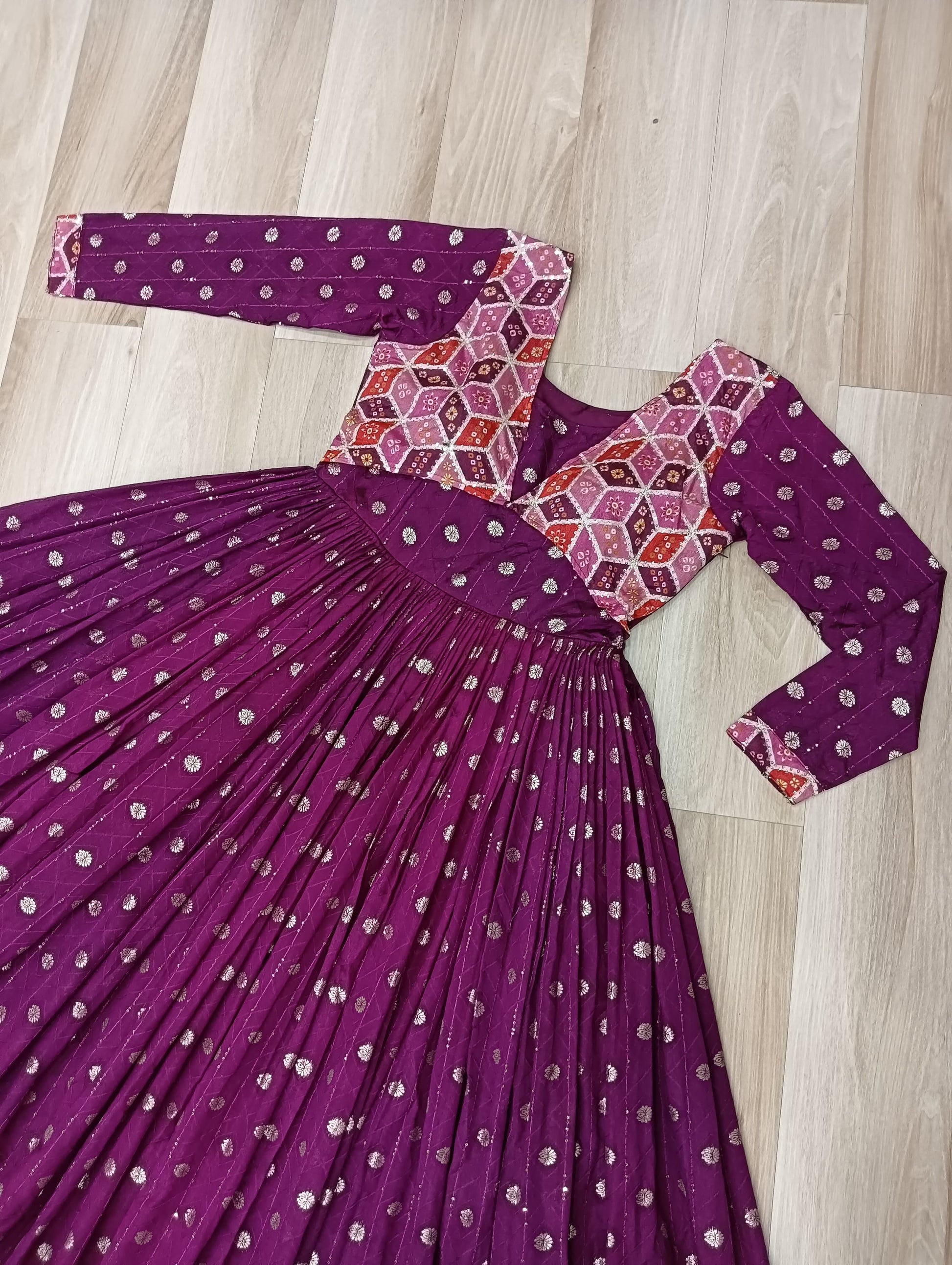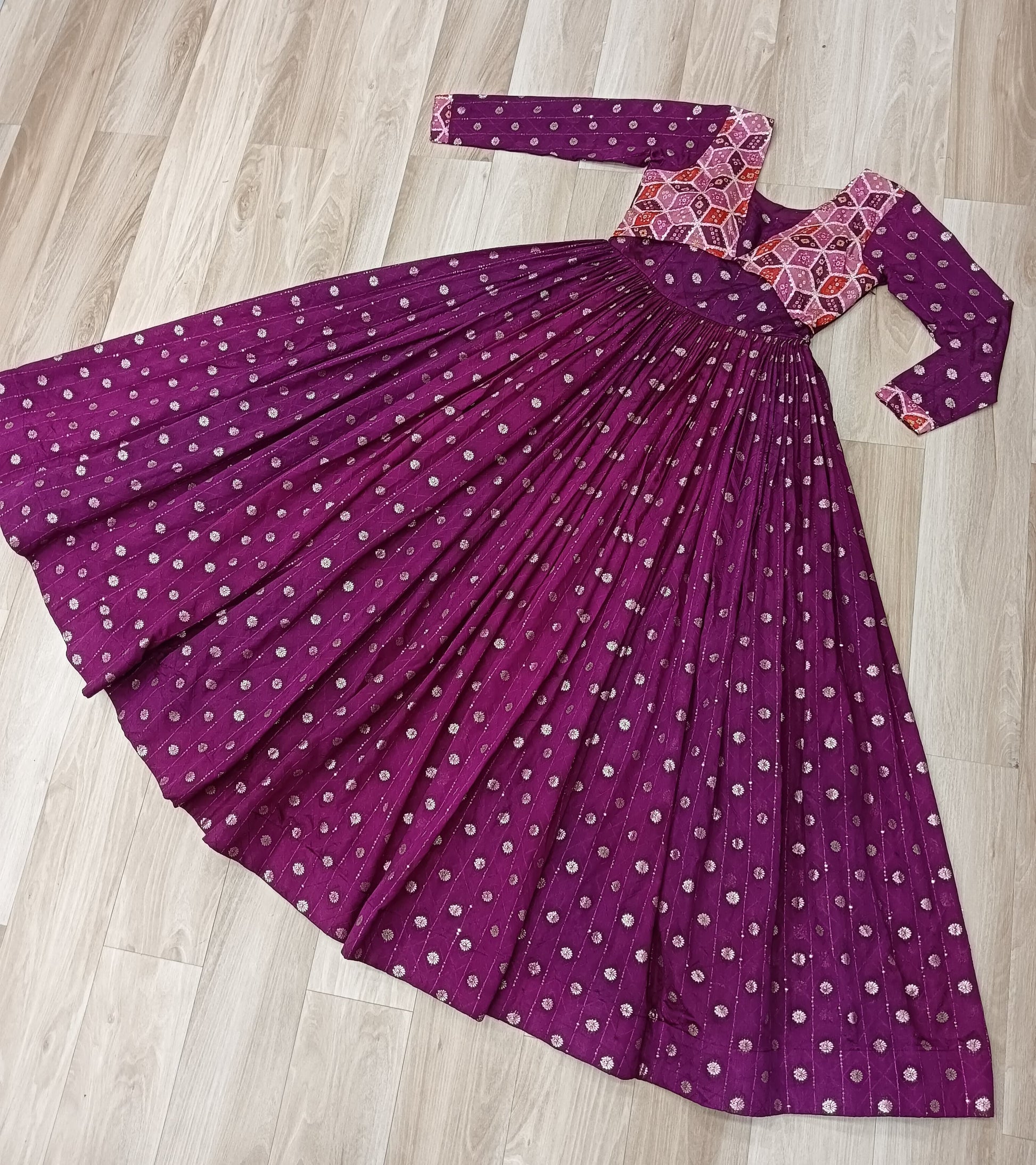 Premium Readymade Gown with Position Print Choli Design With Staple Jequard