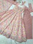 Baby Pink Pure Orange Chiffon Floral Print Fabric Fully Flair Anarkali Salwar Suit