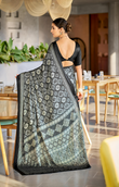 Vibrant Black Ajrakh Printed Soft Modal Silk Natural Print Saree