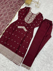 MAROON BEAUTIFUL PURE BLOOMING RANGOLI SILK FABRIC STRAIGHT FIT KURTA WITH DUPPTA SET (Copy)