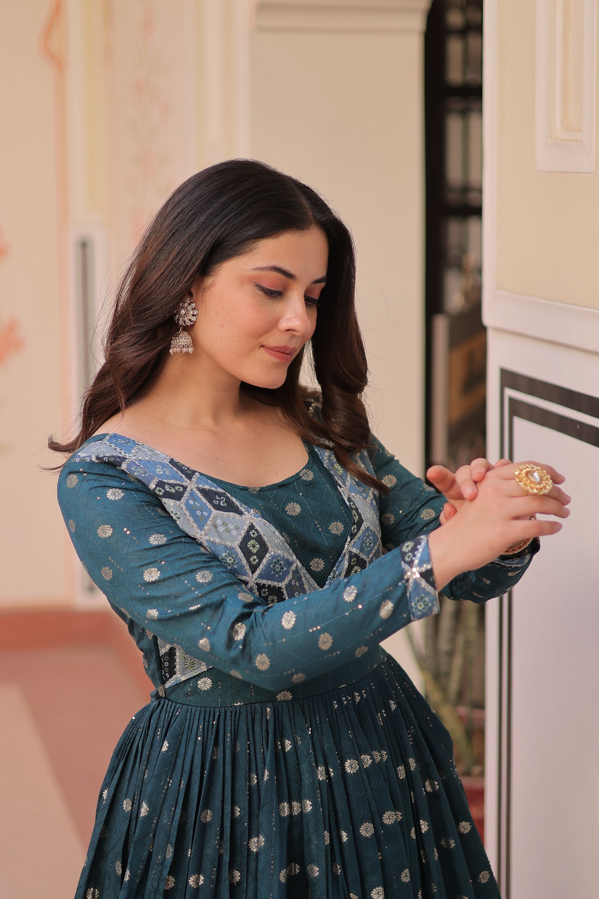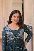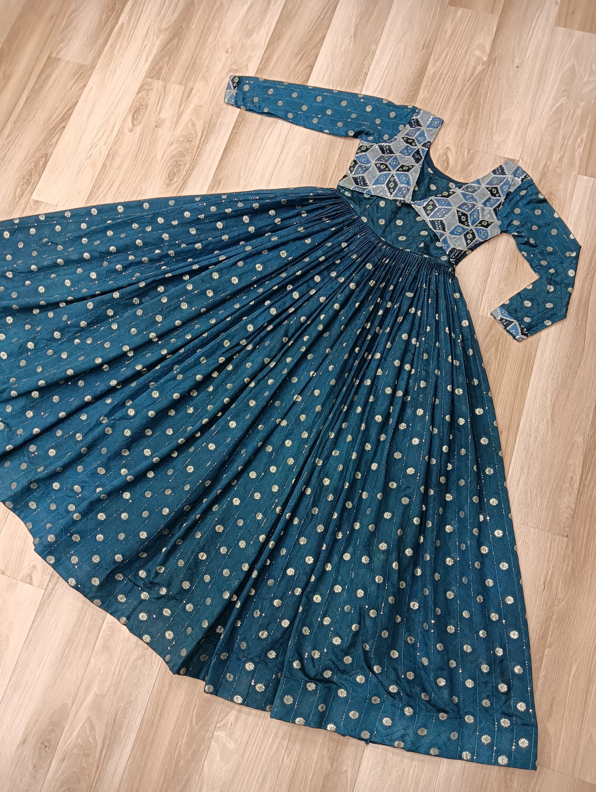 Premium Readymade Gown with Position Print Choli Design With Staple Jequard
