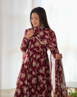 Dark Maroon Heavy Pure Fox Georgette Multi Floral Print Suit